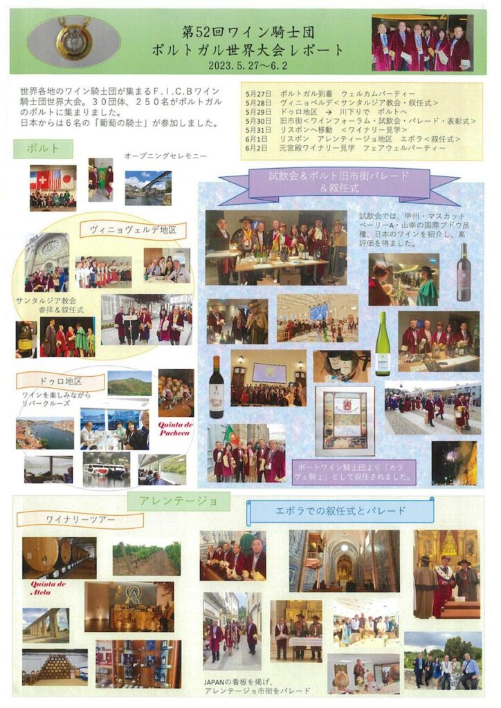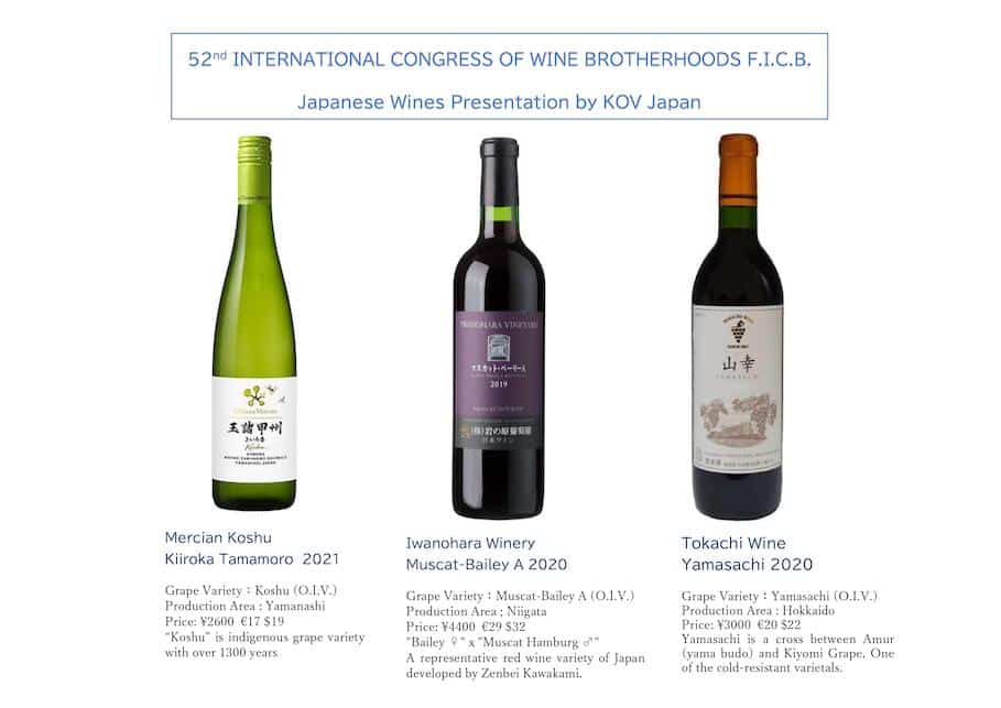 Lors du 52ème Congrès de la F.I.C.B. au Portugal en mai 2023, KoV Japan a organisé la première dégustation de vins produits au Japon (« Nihon wines »). Cette dégustation a remporté un beau succès auprès des participants et a permis de constater les grands progrès réalisés par la viticulture japonaise ces dernières années. Les appréciations des congressistes ont été consignées et rapportées aux viticulteurs japonais qui avaient proposé leur production à la dégustation.