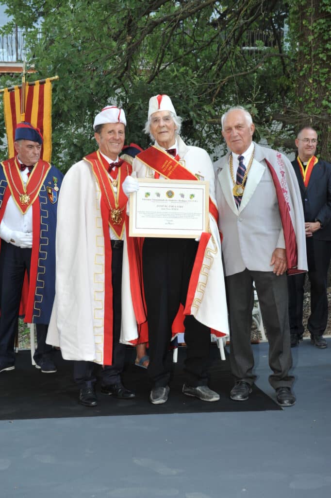 A l’occasion de ce Chapitre, le président de la F.I.C.B., Alan Bryden, à remis le Diplôme d’Honneur de notre fédération à Jean-Pierre Boyer, prédécesseur de Patrick Pons et désormais Grand Maître émérite de l’Ordre. Outre le rôle de Jean-Pierre Boyer comme Vice président de la F.I.C.B pour le Sud de la France jusqu’en 2022, ce Diplôme a permis de souligner sa carrière de vigneron indépendant et expert, producteur de grands vins de l’appellation de l’A.O.C. Bandol dont il a présidé l’association. Il a également été Président des Vignerons Indépendants pour le Région Provence-Côte d’Azur.