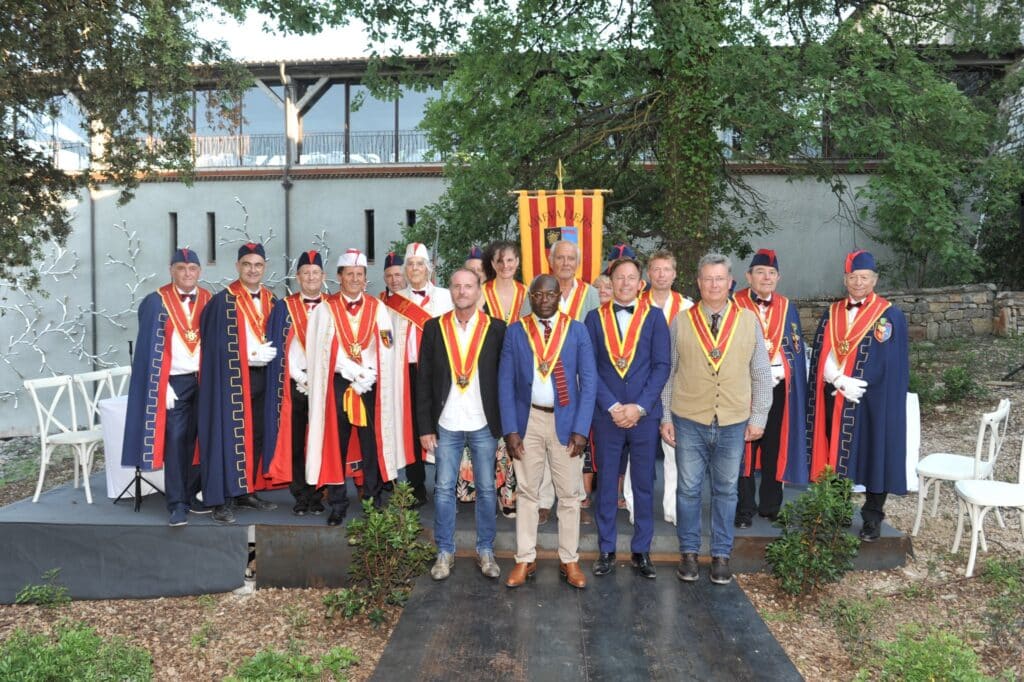 Le Chapitre a été bien sûr également permis d’introniser et d’accueillir de nouveaux chevaliers et dignitaires au sein de la confrérie, le tout clos par un repas de haut niveau assorti de dégustation de crus des 8 appellations d’origine contrôlées de la région.