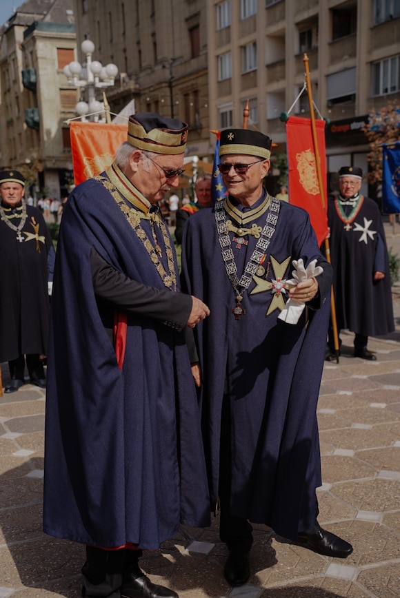 Le lendemain, la journée a débuté par un défilé des participants en tenue de confrérie à travers la ville de Timisoara, animé par des personnages en costumes historiques et même par une salve de canon qui impressionna fort l’assistance nombreuse ! Ce défilé fut suivi d’une messe dans la cathédrale catholique-romaine de la ville et de la bénédiction des intronisations réalisées à cette occasion.