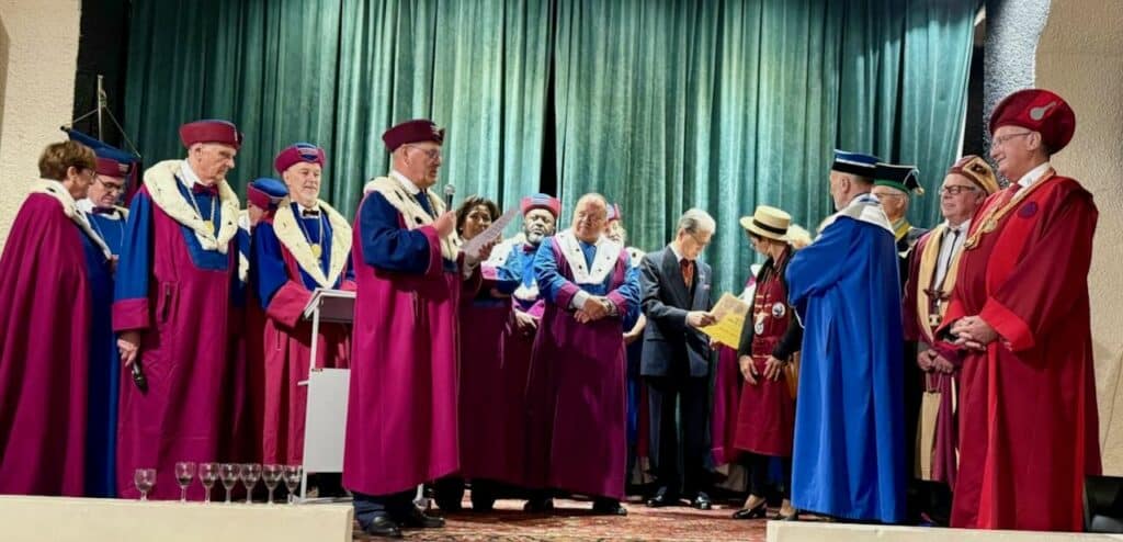 Après avoir remercié tous ceux qui, par leur travail et leur engagement, ont contribué à la grandeur des Échansons, le Grand Chancelier conclut son allocution en rappelant cette vérité simple mais si chère à notre cœur : « L’eau sépare les hommes, mais le vin les rassemble.«