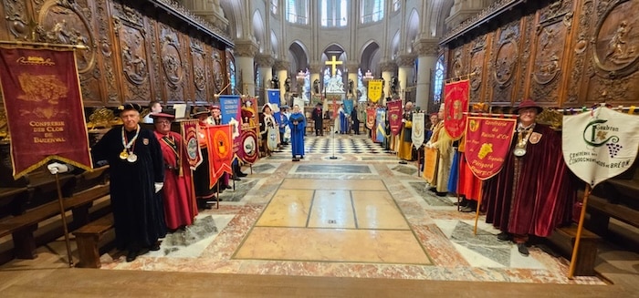 Conscients de l’attrait d’une cérémonie dans Notre Dame rénovée, nous avions publié un article pour attirer l’attention de nos membres. Aussi, nombreux ont été les participants appartenant à des confréries membres de la FICB : Knights of the Vine of the USA, The Oregon Wine Brotherhood , ainsi que les membres de plusieurs confréries suisses : Fédération des confréries oenogastronomiques (incluant le Gruyère et le chevaliers du bon pain), Académie du Cep, Ordre de la Channe, Guillon, Potes au feu…; et les chevaliers Bretvins venus de Loire-Atlantique.