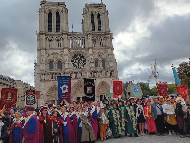 Pour fêter son 25ème anniversaire, le « Comité de Coordination de la Région Ile de France des Confréries » (Cocorico, membre de FICB), avait vu grand : une cérémonie, une messe dans la cathédrale Notre Dame, sortie magnifiée du terrible incendie qui l’avait dévasté il y a 6 ans.