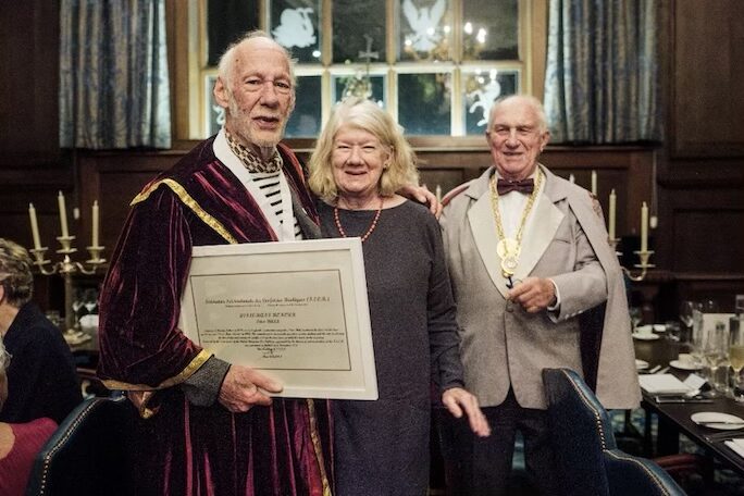 Peter Hall with his wife Chris, receiving the Diploma of Honour from Alan Bryden