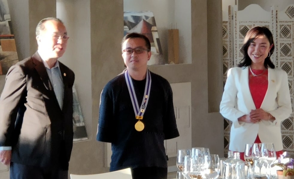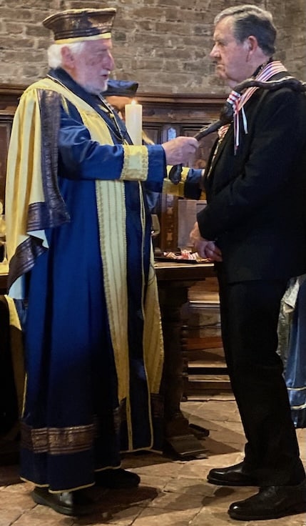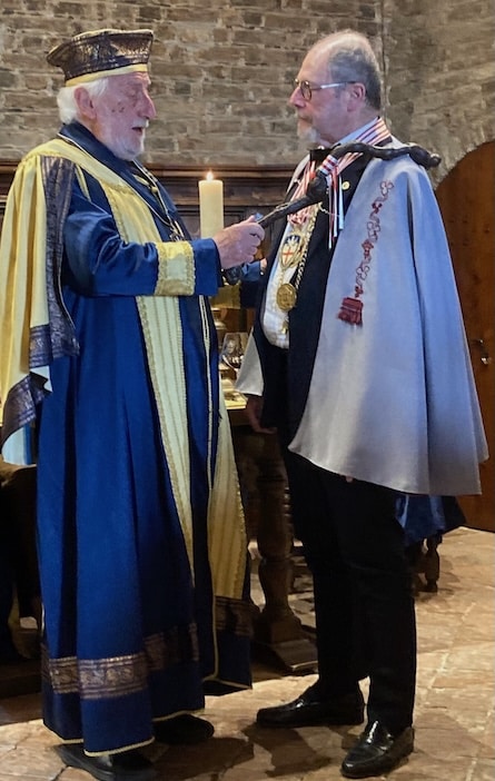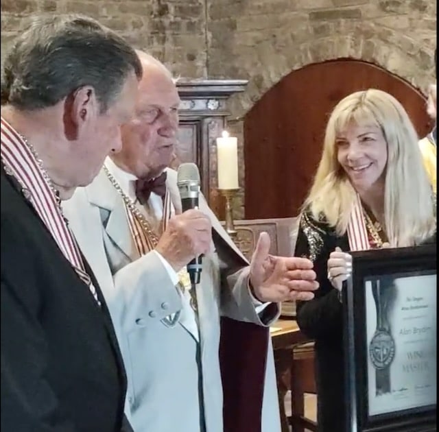 Kenneth Hick of the Oregon Wine Brotherhood gave a speech thanking Alan Bryden, Honorary President of the FICB, for his work during his ten years as President and for his assistance in implementing his brotherhood’s programs; he awarded him the title of Wine Master.